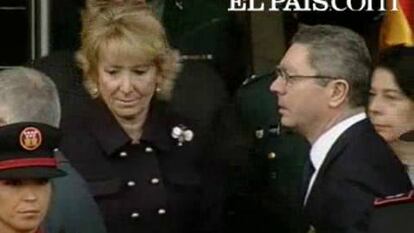 Sonsoles Espinosa, la mujer del presidente, forma parte del coro de la Capilla Real que ha cantado durante el acto. Los integrantes del coro, todos vestidos de negro, han interpretado la pieza Da pacem domine. El homenaje ha obligado a retrasar hasta esta tarde la reunión del Comité Ejecutivo Nacional del PP, convocado para evaluar los resultados electorales y deliberar sobre el futuro de Rajoy. El esperado encuentro entre Zapatero y Rajoy, el primero tras los comicios, se ha limitado a un cruce de miradas y a un saludo con la cabeza desde la distancia.