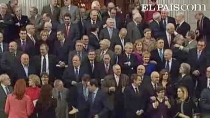 Allí, el Rey se ha encontrado con Santiago Carrillo, Landelino Lavilla, que era el presidente de la Cámara Baja el 23-F, Manuel Fraga, que ha acudido en silla de ruedas, los portavoces de CiU y del Partido Andalucista en 1981, Miquel Roca y Alejandro Rojas-Marcos, y al entonces líder del PSOE, Felipe González. Todos ellos, junto con Bono y Zapatero, han posado para los fotoógrafos. El monarca ha sido especialmente cariñoso con el exsecretario general del PCE, al que ha abrazado efusivamente, y con Lavilla, a quien ha besado en la mejilla.
