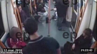 En las imágenes recogidas por las cámaras de seguridad del metro y adelantadas por la agencia de noticias Europa Press se ve cómo el agresor pasa por delante del denunciante que, sentado, retira un poco las piernas para dejarle pasar. A continuación, el agresor tira su mochila en un rincón y propina una patada en la cara al agredido. Después, comienza a darle puñetazos y otra patada sin que la víctima pueda defenderse. La agresión termina cuando intervienen dos policías que estaban por casualidad en el vagón y le detienen.