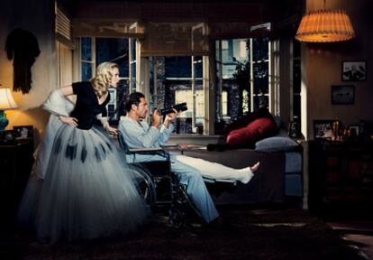 Y entre las más recientes se podrán ver los retratos que Leibovitz hizo a Penélope Cruz y Pedro Almodóvar en la intimidad de un camerino y la versión que de La ventana indiscreta hicieron en 2008 Scarlett Johansson y Javier Bardem.