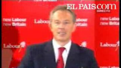 Vestido con traje oscuro, corbata roja y sobre un fondo también rojo con el eslogan Nuevo Laborismo, Nueva Gran Bretaña, el premier, de 54 años, ha agradecido el apoyo recibido de su esposa Cherie y de sus cuatro hijos durante sus diez años de mandato.