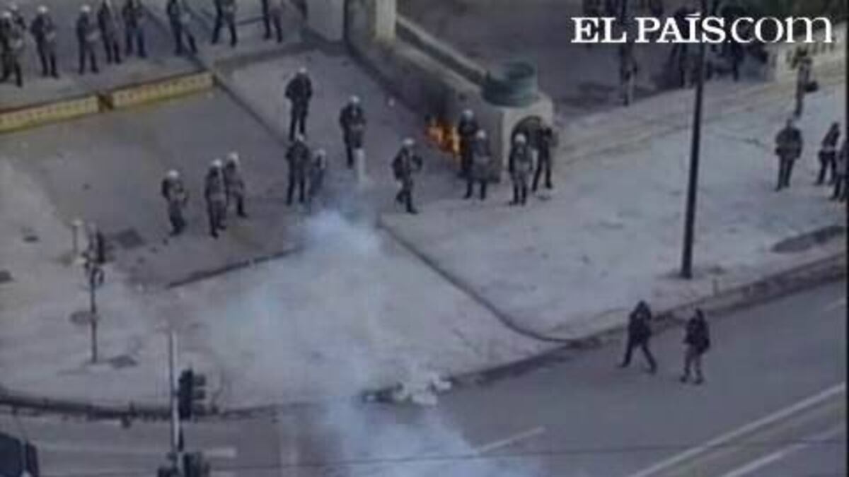 Los autores de los nuevos disturbios son los de siempre: jóvenes, en su mayoría encapuchados, que se dedican al vandalismo en mitad de las protestas pacíficas. Y, de nuevo, han vuelto a causar fuertes batallas con la policía a las puertas del Parlamento griego. Tras una noche de calma, grupos de jóvenes radicales han atacado con piedras a las fuerzas policiales cuando los agentes han comenzado a identificar a los manifestantes y detener a los menores en torno al edificio de la Universidad de Atenas. Las autoridades han respondido lanzando gas lacrimógeno. Por su parte, profesores universitarios han intentando mediar y calmar los ánimos sin suerte. Con cócteles molotov y piedras, los violentos han vuelto a enfrentarse a la policía, como hicieron ayer en el epicentro de las revueltas.