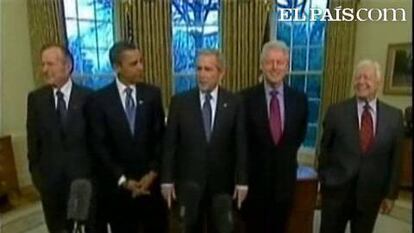 Carter, Bush padre, Clinton, Bush hijo y Obama posan juntos en el Despacho Oval de la Casa Blanca