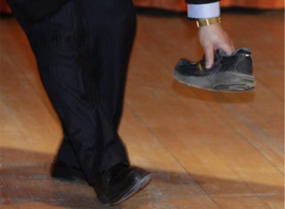 El primer ministro chino, Wen Jiabao, ha vivido una reedición del zapatazo protagonizado hace un mes por el ex presidente de Estados Unidos, George W. Bush, en Irak, después de que un miembro del público que asistía al discurso que pronunciaba en la Universidad de Cambridge le arrojara un zapato que quedó lejos del mandatario, según los testigos.