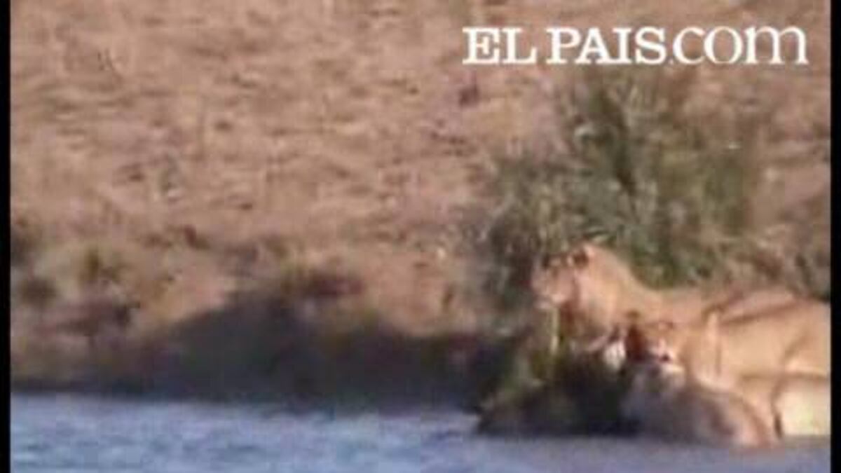 Un videoaficionado graba en la sabana africana una brutal batalla entre búfalos, leones y cocodrilos que lleva ya más de 9 millones de visitas