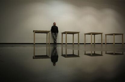 Si Marcel Duchamp decidió que un urinario podía ser una obra de arte, ¿por qué no también una cáscara de plátano que se apoya sobre una pastilla de jabón y una mancha de grasa? Wilfredo Prieto (Santi-Spíritus, 1978) se engancha al cordón umbilical del padre del arte conceptual con objetos sencillos que mutan de significado tras pasar por su mano. Amarrado a la pata de la mesa es el título de la primera exposición monográfica de Prieto en España, organizada por el Centro de Arte Dos de Mayo de Móstoles (CA2M). Hay más de 50 piezas, casi siempre objetos reconocibles: una sandía, un montón de cal, otro de arena, una cerilla, un charco de café, otro de leche... "Me interesa que las piezas parezcan accidentales porque en la manipulación a veces se pierde información", explicó ayer el artista. Al introducir los objetos cotidianos en el contexto de un museo o una galería, Prieto se limita a señalar que existen otros significados además del evidente.