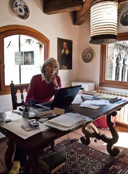 El manuscrito de la decimonovena entrega de Brunetti está encima del escritorio. "Saldrá en 2010. He publicado una al año desde 1992. Mi comisario y yo llevamos juntos toda la vida". Unos libros, algunas fotocopias, el ordenador: la mesa de madera antigua refleja un pragmatismo sin redundancias. Alrededor, centenares de CD de música clásica, su gran pasión junto con la escritura. Las ventanas enmarcan, al fondo, el campanario de San Marco, símbolo de la ciudad que inspira su obra. El último libro va de tarot y justicia. Como los otros, no será traducido al italiano: "Para vivir bien, necesito ser una más del barrio". Lo dice a pesar de que al verla unos turistas barrigudos y rubios se den media vuelta y saquen el móvil. "Los vecinos son la fuente de mis historias, nuestra relación tiene que ser genuina". Al entrar en la cafetería de abajo levanta la barbilla en ademán de saludo y se informa sobre el plato del día, lanza un ciao al señor que pasea a un perro, declina cortés la invitación a un cumpleaños. Ligera, sonriente, con despejada espontaneidad, por la calle como en casa. Con los calcetines amarillos sobre las alfombras persas.