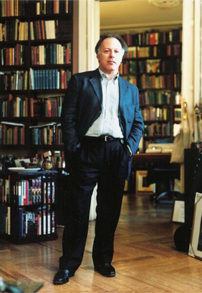 A los 19 años publicó su primera novela, Los dominios del lobo. Hasta entonces había apuntado maneras de escritor, y Juan Benet se refería a él como "el joven Marías", como dejando entrever su fe en el talento de aquel chico un poco extravagante. Seguramente porque era muy tímido, se peinaba el pelo muy negro y espeso con una raya en medio, de forma que le caía como dos cortinas, ocultándole en parte la cara. Callado y nunca ausente, la gente comenzó a saber que escribía, que si alguien como Benet le había buscado un editor, debía de ser por algo. Ahora tiene 53 años, y el joven Marías es un veterano escritor. Tiene el cabello cano, y ya no lo utiliza para ocultarse de los demás. Es un escritor hecho y derecho, de una pieza, el más reconocido y admirado de los nuestros en el extranjero, lo que no le ha impedido vender cinco millones de ejemplares de sus novelas y recibir muchos de los premios internacionales que se otorgan a la verdadera literatura. Esa mezcla de reconocimiento y éxito comercial se ha dado en él con gran naturalidad y sucedió en varios países de Europa a la vez. Ahora ha salido el segundo tomo de su obra Tu rostro mañana, que lleva como subtítulo Baile y sueño, y es una novela cuyo argumento contado sucintamente puede llevarte a pensar que es un policiaco. Pero que enseguida aparece por sus páginas esa escritura de darle vueltas a las cosas, ese ir y venir, ese detener la acción para introducir largas reflexiones, o contar hechos del pasado. Es decir, todo eso a lo que nos tiene acostumbrados. En su casa de la plaza de la Villa de Madrid, llena de luz color melocotón, Javier Marías ha recibido a El País Semanal. Casi parece el mismo de siempre, si no fuera por esas canas cada vez más evidentes y por una nueva sonrisa que le alegra la cara. Como si por fin estuviera contento consigo mismo.