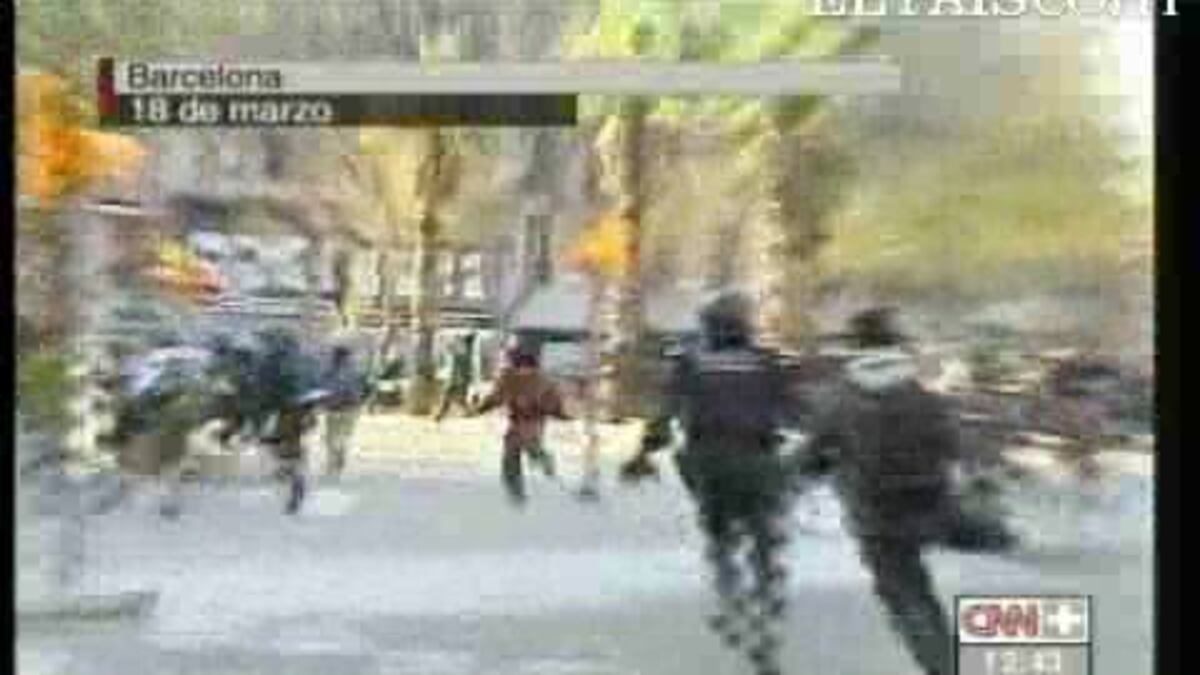 Los jóvenes buscaban guerra y la encontraron. Desfilaron hacia las Ramblas a paso ligero y con la cara tapada. En Canaletes, junto a la plaza Catalunya se produjo el primer choque: los manifestantes pretendían pisar la plaza de Sant Jaume, sede de la Generalitat y el Ayuntamiento, y toparon con una eficaz barrera de antidisturbios. Repelido el primer ataque, los jóvenes enfilaron hacia la Via Laietana en medio de una presencia policial apabullante. Un helicóptero sobrevoló durante toda la noche el cielo de Barcelona.