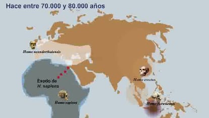 "Los neandertales son más parecidos a los humanos de otros continentes diferentes de África que a los africanos", explica Pääbo, del Instituto Max-Planck de Antropología Evolutiva (en Alemania). "Esto indica que la hibridación se produjo después de que el Homo sapiens empezara a salir de África, seguramente en Oriente Próximo y durante poco tiempo, antes de que evolucionaran las distintas ramas euroasiáticas".
