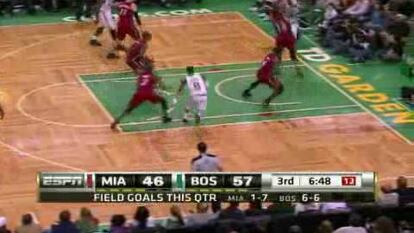 Rajon Rondo cuajó una espléndida actuación con un triple doble, 11 puntos, 10 rebotes y 10 asistencias, y fue decisivo en el triunfo de Boston ante Miami (85-82), el tercero de los Celtics sobre los Heat esta temporada. Paul Pierce tuvo un día aciago en ataque. Solo anotó un punto -falló sus 10 tiros de campo- lo que no ocurría desde su temporada de novato (98-99).