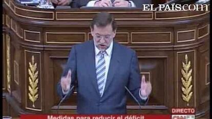 El presidente del Gobierno, José Luís Rodríguez Zapatero, y el líder del PP, Mariano Rajoy, hablan en el Congreso sobre las medidas tomadas por el Gobierno para reducir el déficit. Primero ha intervenido Zapatero y después Rajoy. Este vídeo mezcla los momentos más importantes de sus intervenciones, entre las 09.00 y las 09.45 horas.