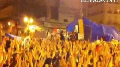 Al inicio de la jornada de reflexión, los concentrados en Madrid guardan unos momentos de silencio a modo de protesta