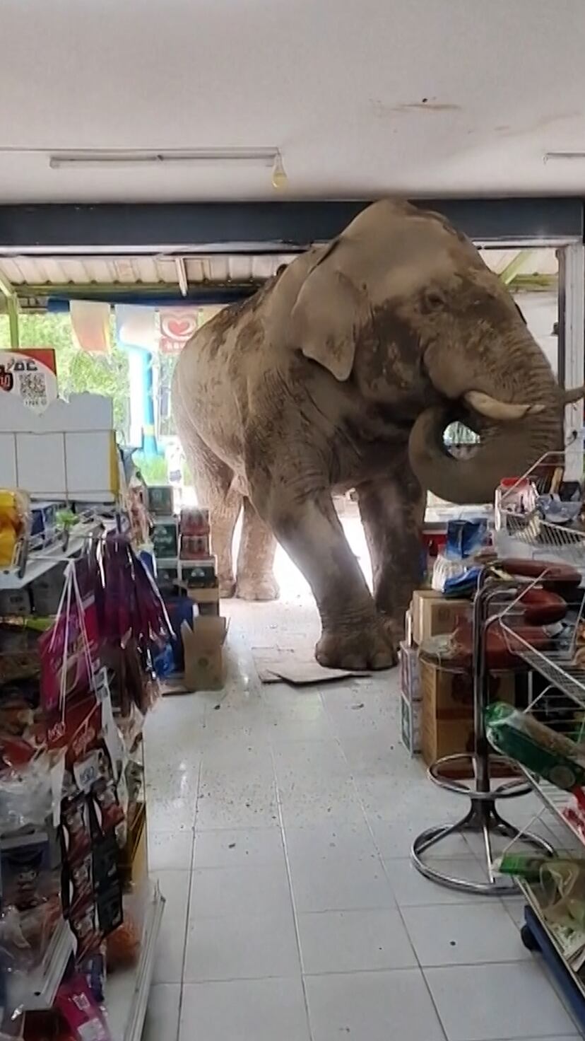El momento en el que un elefante entra en una tienda en Tailandia para buscar comida