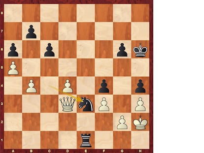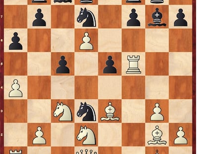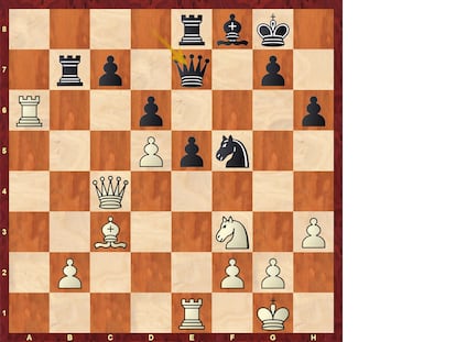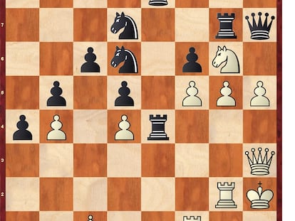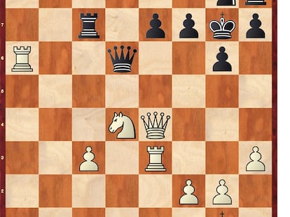 Con un peón más pero bajo gran presión, el genial veterano ucranio encuentra un lance tan bello como decisivo para lograr ventaja ganadora