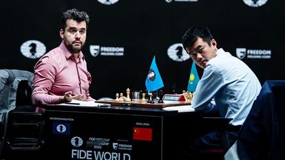 Hans Niemann, acusado de trampas por el campeón del mundo, Magnus Carlsen, logró en septiembre que se hablase tanto de ajedrez como cuando la serie Gambito de Dama (Netflix) se convirtió en un tremendo éxito. Ni siquiera hay indicios sólidos de que el estadounidense, de 19 años, haya hecho trampas en partidas presenciales (sí por internet, como menor de edad). Pero la Federación Internacional (FIDE) ha tomado medidas preventivas muy estrictas en el Mundial de Astaná (Kazajistán) donde Ian Niepómniashi y Liren Ding firmaron este lunes unas tablas soporíferas en la undécima partida. El ruso domina por 6-5 a falta de tres (la próxima, el miércoles), mientras Niemann disputa un torneo a 400 metros.