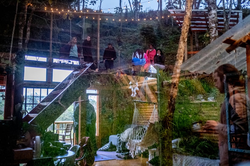 En la cabaña, con los ventanales repletos de dibujos de setas y palabras como “amor” y “cuidado” escritas en colores de neón, hay una mesa con pinturas, instrumentos colgados de las escaleras, libretas y bolígrafos y una tabla repleta de frutas y aperitivos. “Lo que consiguen los hongos es apagar los interruptores del juicio y de la censura continua que ejercemos como adultos. Por eso es muy normal que lo primero que sintamos sean muchas ganas de ser creativos”, explica Cubillos mientras remueve cacao y añade las setas que ella misma cultiva y seca. En la ceremonia grupal, por la que cada paciente paga 200.000 pesos (unos 45 euros), los terapeutas también consumen psilocibina, aunque en menor medida. “Así ellos tampoco se sienten juzgados por alguien que no está en un viaje”.