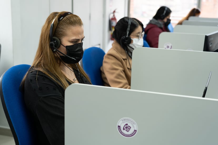Un grupo de mujeres rescata a las víctimas de la violencia machista en Bogotá. Lo hacen todos los días, por teléfono, desde un salón con vista a los cerros en el centro de la ciudad. Rubi, que prefiere que no se diga su nombre real, es una de las voces que responde al otro lado de la Línea Púrpura. ”Muchas no saben que están siendo víctimas de un delito. Hay un gran desconocimiento sobre cuáles son sus derechos”, dice. Es una de las abogadas que, junto a psicólogas, trabajadoras sociales y enfermeras. atienden las llamadas de mujeres que están en peligro. Entre enero y julio, fueron más de 15.000. “Algunas solo necesitan que las escuchen”, señala. Otras necesitan intervención inmediata porque su vida está en riesgo. A ellas las ayudan huir del agresor, que en la mayoría de los casos son sus parejas, y las acogen en los centros de refugio. Más de 500 personas, entre mujeres y niños, viven en estos espacios.