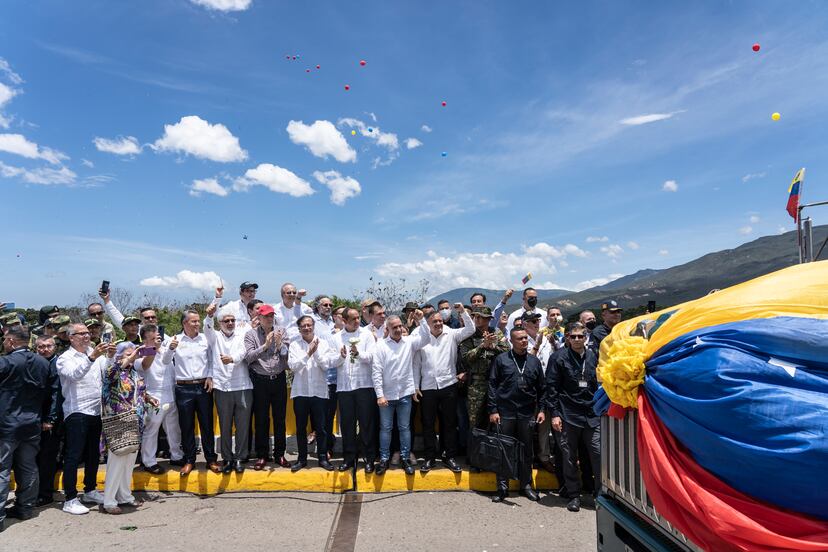 El plato fuerte de una jornada de calor pegajoso era el paso de los camiones, además de la presencia del presidente confirmada a última hora. Un vehículo de carga venezolano haciendo sonar el claxon, con globos de colores y la bandera anudada al morro, atravesó el puente entre aplausos. Como mercancía llevaba dos rollos de lámina metálica. Del otro lado, cruzó un camión colombiano, también abanderado. Petro explicaría después que iba cargado de medicinas. Los dos países se acababan de abrir la puerta al intercambio comercial después de siete años marcados por los desencuentros. “La gracia del comercio es que traiga progreso para la población y yo estaré midiendo eso”, advirtió Petro.