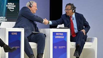 Gustavo Petro ha llevado al foro de Davos, donde se reúne la élite económica mundial, una de sus viejas obsesiones: el canje de deuda por servicios ambientales concretos para atajar la crisis climática. El presidente de Colombia, muy crítico con el capitalismo, al menos tal y como lo conocemos, ha abogado una vez más por acabar con la dependencia del petróleo y el carbón para acometer una acelerada transición energética. “Vamos al punto de no retorno, y el punto de no retorno significa la extinción de la vida”, advirtió con dramatismo.