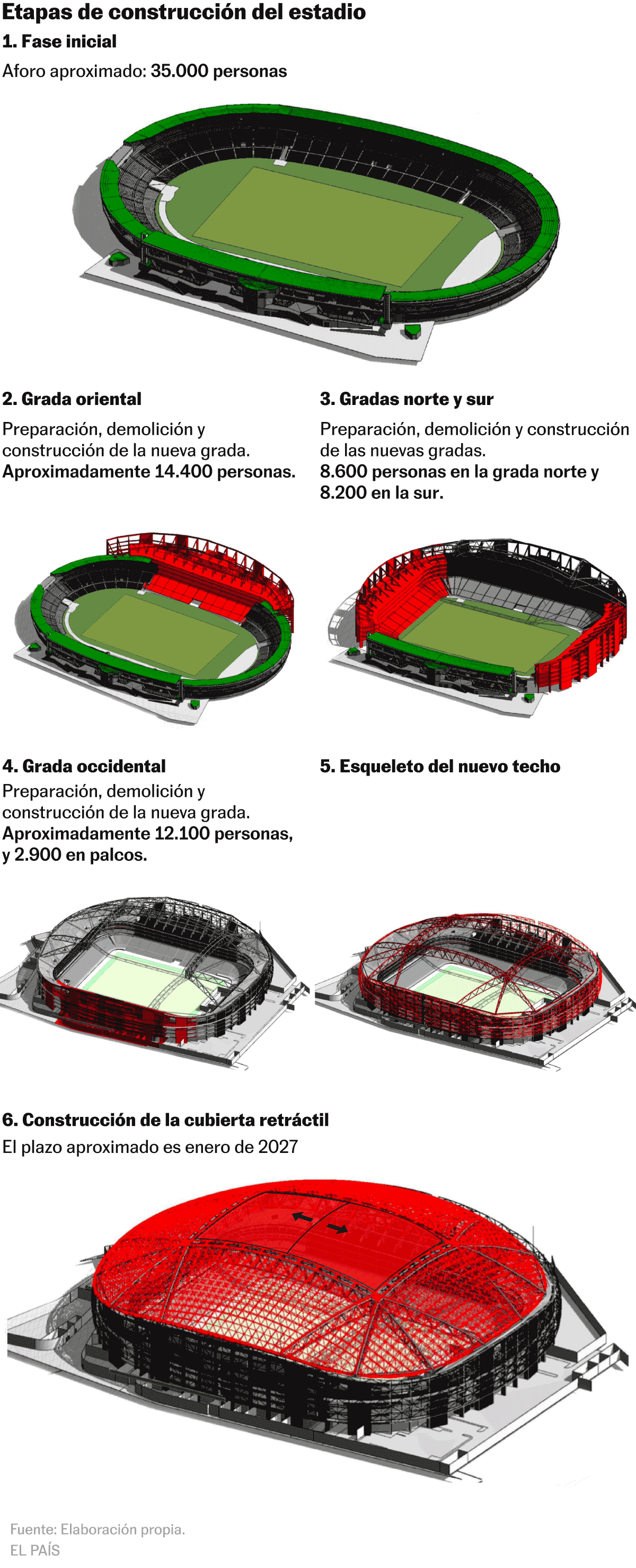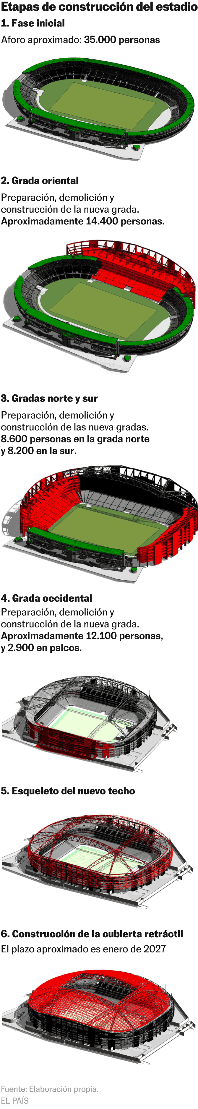 El estadio de El Campín se ha quedado obsoleto y no cumple ninguna norma técnica. Se construirá desde cero. Pero se hará por etapas para que la competición siga su curso y el fútbol no tenga que parar. Durante los 55 meses que durarán las obras se trabajará primero la gradería oriental, para pasar después a la sur y la norte. Por último, la occidental. Se levantará un estadio de última generación con muchas ventajas con las que no cuenta hoy. Las gradas estarán muy cerca del césped, al modo europeo, y será un lugar 100% cubierto, con techo retráctil. Las sillas serán de confort y habrá más de 240 palcos disponibles alrededor del campo. Se encargará de la construcción la multinacional Lanik, una empresa con más de 40 años de experiencia en el diseño y la fabricación de cubiertas en grandes edificios e infraestructuras. Dentro de su portafolio se encuentran obras tan extraordinarias como las de la Caja Mágica de Madrid o el impresionante estadio Dínamo de Moscú.
