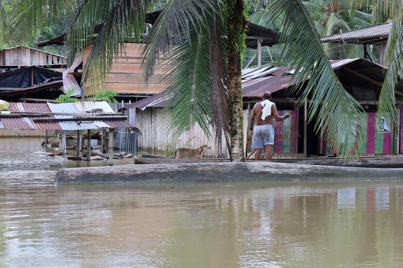 El río Baudó se ha desbordado tras incesantes lluvias en la región Pacífica de Colombia, arrasando con viviendas, cultivos y acueductos