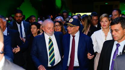 El lema de esta edición de la FILBo es Leer la naturaleza, un tema que hermana a dos países amazónicos, como se encargaron de recordar con insistencia a lo largo del día los mandatarios. “Brasil y Colombia tenemos una responsabilidad muy grande: tenemos que salvar la selva amazónica”, remarcó Petro, quien insistió en la necesidad de descarbonizar sus economías, uno de sus mantras. Son los dos países más biodiversos del mundo, y sus presidentes han derrochado sintonía en ese frente –con algunos matices en torno a la exploración petrolera, que Petro quiere dejar atrás–. Cali será la sede de la cumbre de biodiversidad de la ONU de este año, la COP16, y Belem do Pará acogerá la de cambio climático del próximo año, la COP30, como destacaron en sus discursos. Son también los países que más han reducido la deforestación en el mundo, a pesar de los enormes desafíos en el horizonte.