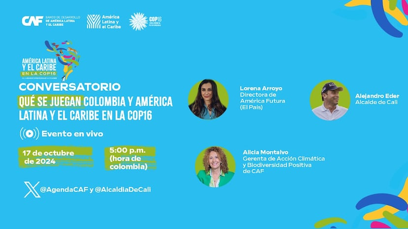 Tras las charlas sobre los jóvenes en la COP y los saberes ancestrales, este es el último de los tres conversatorios previos a la COP16 organizados por CAF y América Futura que tendrá lugar este jueves, 17 de octubre, a las 5:00 pm Colombia (4:00pm de México/7:00pm de Buenos Aires). Lo podrán seguir en las plataformas digitales de CAF y EL PAÍS.