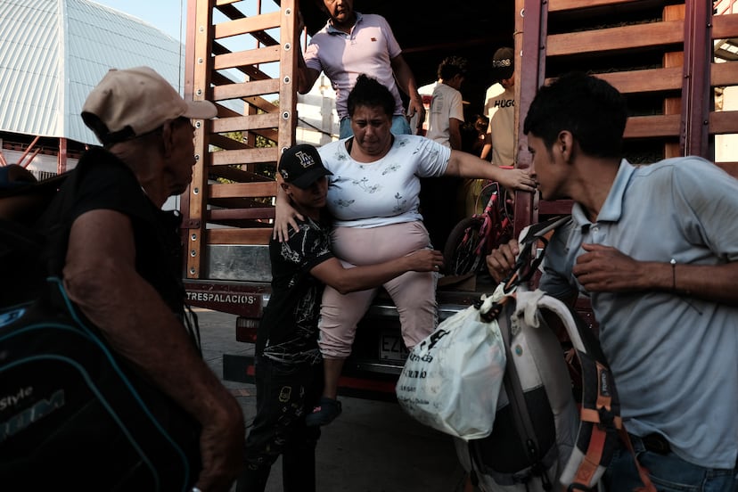 Cuando salió de la finca donde vive, con su esposo electricista y sus hijos de 11, 10 y 7 años, se cruzaron con 20 guerrilleros armados hasta los dientes. Los detuvieron. “Hasta aquí fue, pensé yo”, relata la mujer que prefiere reservarse su apellido, como muchos de los desplazados que aceptan hablar. Mientras los pequeños saltan en las gradas, a su celular llegan imágenes de cadáveres apilados que nadie se atreve a recoger. La familia pudo seguir tras alegar que son civiles. Pasaron esa noche en un rancho cerca del pueblo, pero no pudieron dormir ante el temor de que los armados también llegaran hasta allí. Siguieron a Cúcuta, y no tienen claro donde se van a quedar. “Primero la vida. Yo no quiero regresar hasta que no se acabe todo”, dice con los ojos encharcados. “El que lo vive es el que lo siente”.