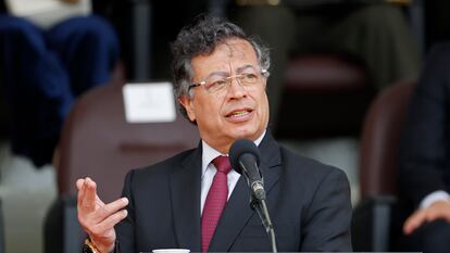 El presidente de Colombia, Gustavo Petro, ha asegurado este martes que existe un plan por parte de narcotraficantes —sin especificar cuáles— para asesinarlo en un atentado con misiles contra su avión. “Me quieren disparar un misil a mi avión, que se compraron los narcotraficantes y que tienen guardado por ahí. No uno, sino dos misiles. Me quieren tumbar rápidamente porque saben que estamos tras las grandes mafias de Colombia”, ha señalado en su discurso de posesión del nuevo director de la Policía Nacional. “Sabemos quienes son”, ha agregado.