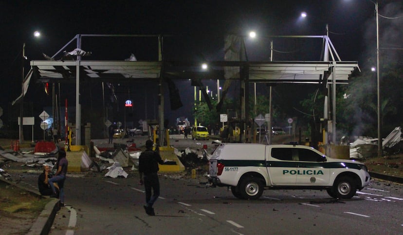 La violencia de los grupos armados vuelve a estremecer a Cúcuta. La mayor ciudad colombiana sobre la frontera con Venezuela pide a gritos, una vez más, la atención nacional. Una serie de explosiones sacudieron cerca de la medianoche del miércoles el municipio de Villa del Rosario, parte de la zona metropolitana, con un saldo de varias personas heridas. Una de las detonaciones dejó completamente destruido el peaje sobre la autopista que comunica a Cúcuta con San Antonio del Táchira, del lado venezolano. Un centro de atención inmediata de la Policía (CAI) también fue atacado con detonaciones y ráfagas de fusil, como se puede observar en diversos videos que circulan en las redes sociales, y a otro le lanzaron una granada en la madrugada de este jueves.