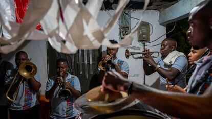 Mientras todos festejan, Arbey Mina siente nostalgia. Trabaja en el puesto de comidas de su esposa, donde prepara platos con pipilongo, una pimienta verde que abunda en la región. Antes tuvo un rol más central en la fiesta: fundó Los Jugueritos, la agrupación de jóvenes que acompaña las procesiones y danzas con trompetas, trombones y bombos. Hace 20 años comenzó a enseñarle cómo tocar estos instrumentos a unos adolescentes. Los dejó hace tres años por influencia de la iglesia evangélica a la que pertenece. “Lloro, extraño a mis muchachos, son esencia mía. Me dan emoción. Pero Dios dice que no debo adorar ídolos falsos, como el Niño”, explica. “Jesús es hijo de Dios, no es Dios”, añade.