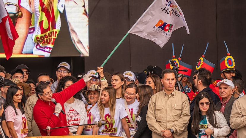En la tarima se mantuvo flanqueado por varios ministros de su remodelado gabinete. Como el de Interior, Armando Benedetti, uno de los estrategas de la consulta, o la de Ambiente, Lena Estrada, la primera ministra indígena en la historia de Colombia, que había marchado con la minga indígena. También lo acompañaban congresistas del Pacto Histórico, la variopinta coalición de izquierdas que lo respalda, entre los que se destacaba María José Pizarro, la encargada de ponerle la banda presidencial en la posesión del 7 de agosto de 2022, en la misma Plaza que lo recibió entre vítores este jueves. Inmediatamente después de sus palabras, el grupo completo se dirigió al Capitolio para presentar formalmente las 12 preguntas de la consulta. Allí, el presidente le solicitó al Senado, en un tono mucho más respetuoso, permitir que el pueblo se exprese.