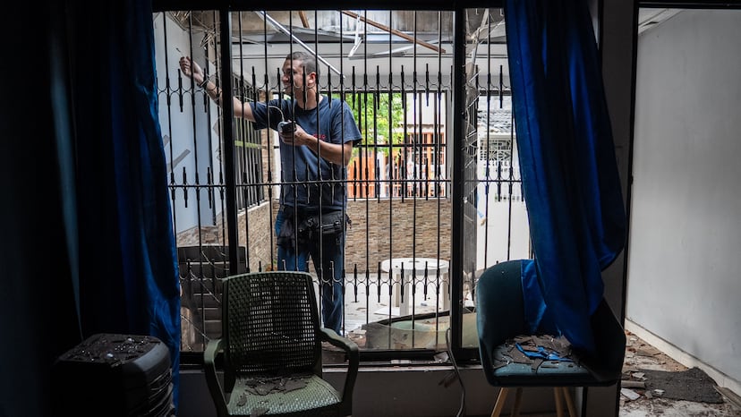 Jesús Martínez y Amelia Muriel de Martínez, vecinos de Villa Colombia desde hace 46 años, recibieron el impacto de las bombas cuando estaban en su habitación principal. La casa que han levantado para toda su familia quedó como una suerte de esqueleto, sin fachadas, puertas ni ventanas. “Elegimos este barrio porque nos sentíamos más seguros al lado de la base aérea. No esperábamos que esa cercanía nos dejara sin vivienda”, reclama la mujer de 78 años desde el antejardín de la casa. Su hija Deisy recoge los escombros del suelo y responsabiliza al Gobierno de lo ocurrido. “Espero que el presidente Petro se haga cargo de los daños que sufrimos los civiles por sus políticas”.