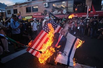 Las protestas en apoyo a Palestina han enardecido el enfrentamiento entre el presidente de Colombia, Gustavo Petro, y sus opositores en el departamento conservador de Antioquia. El alcalde de Medellín, Federico Gutiérrez, justificó la represión a los manifestantes en la noche del martes con unas imágenes de un McDonald’s repleto de pintadas y rodeado por la movilización. “Los niños estaban con sus familias comiendo y jugando tranquilos, y [los participantes de la marcha] llegaron a generar miedo”, dijo. Casi en simultáneo, se viralizó un video en el que se ve cómo a un manifestante, que yace en el suelo, le patean la cara brutalmente. Los agresores no eran policías, sino unos contratistas de la Alcaldía que supuestamente se encontraban allí para promover el diálogo. El presidente Petro, que apoyó las protestas, reaccionó con furia en X y ordenó una comisión que investigue los hechos: “[Son] milicias fascistas, que golpean a la juventud y a los pobres”. El uno y el otro han usado la protesta para subirle el volumen a la retórica contra su contrincante.