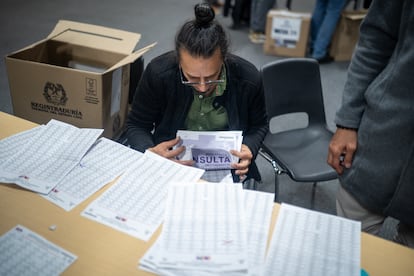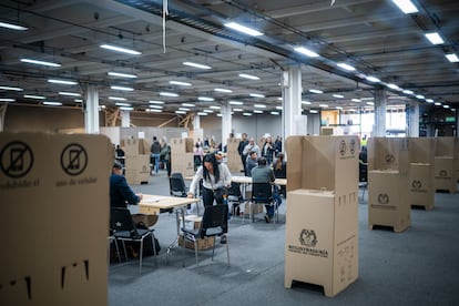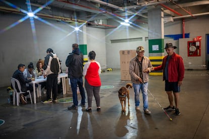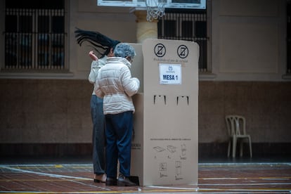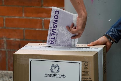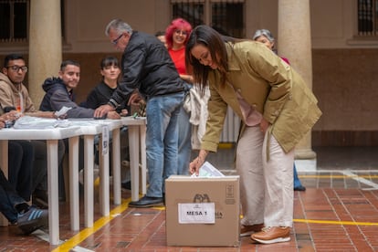Dos mujeres buscan su mesa de votación, en el sur de Bogotá, en la mañana de este domingo.Sergio AceroCiudadanos hacen largas filas para votar, en Cali. La Defensoría del Pueblo registra 50 anomalías durante la jornada, entre ellas 37 “dificultades logísticas”.Jair F. CollJurados de votación esperan a los votantes en el puesto ubicado en la Alcaldía de Bogotá.Diego CuevasPuesto de votación, en el sur de Bogotá. Casi 20.000 mesas de votación han sido instaladas en todo el país.Sergio AceroUn policía custodia uno de los puesto de votación, en Bogotá.Sergio AceroIván Cepeda llega a su puesto de votación en Bogotá.Sergio AceroCepeda muestra su tarjetón antes de depositarlo en la urna. El precandidato denunció “inconsistencias” en el proceso electoral.Sergio AceroUn hombre protesta por las largas filas en Cali, cerca del cierre de las urnas.Jair F. CollUna mujer acompaña a una adulta mayor a votar, en Bogotá.Diego CuevasPersonas acuden a votar en la única mesa de votación instalada en el colegio Mayor de San Bartolomé, en Bogotá.Diego CuevasLa precandidata Carolina Corcho asiste a una misa antes de votar, en la Catedral Primada de Bogotá.Diego CuevasCorcho camina por la plaza de Bolívar hacia su puesto de votación, en Bogotá.Diego CuevasLa precandidata deposita su voto en un colegio del centro de Bogotá.Diego CuevasVarias personas acuden a votar en la Alcaldía de Bogotá.Diego CuevasGustavo Petro saluda a sus seguidores reunidos afuera de su puesto de votación, en Bogotá.Presidencia de la RepúblicaGustavo Petro muestra su tarjetón antes de votar. Durante la jornada, el presidente colombiano ha denunciado fallas en la gestión de la Registraduría.Luisa Gonzalez (REUTERS)Una persona deposita su voto en una urna, en el sur de Bogotá.Sergio AceroUn ciudadano le reclama a una trabajadora de la Registraduría por las largas filas durante la jornada de votación, en Cali.Jair F. CollUna mujer acude a votar con sus cinco perros, en Corferías.Diego CuevasVarias personas hacen fila para votar cerca del cierre de las urnas, en Cali.Jair F. CollUna encargada de la Registraduría recoge el material de votación al cierre de las urnas, en Bogotá.Sergio AceroConteo de votos en Corferias.Diego Cuevas
