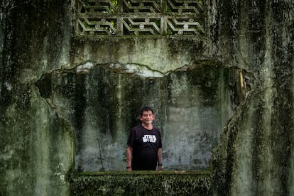 Para el homenaje, Ismael Quiroga, de 61 años, ha pintado la lápida que recuerda a sus tíos muertos, dos de los cerca de 30 familiares que perdió aquella noche. Usa una espuma para aplicar pintura negra sobre el relieve de las letras, mientras muestra las cicatrices en los brazos que le dejó la avalancha. Recuerda que aquella noche, después de horas de una lluvia de ceniza que muy pocos temían y de que se fuera la luz, le preguntó a su mamá cómo reaccionar. Salieron, subieron una loma y llegó la avalancha. Todos los que ahí estaban se salvaron. Ahora, con cierta melancolía y desahogo, lamenta que lo que quedó de su pueblo no esté más limpio, mejor conservado.