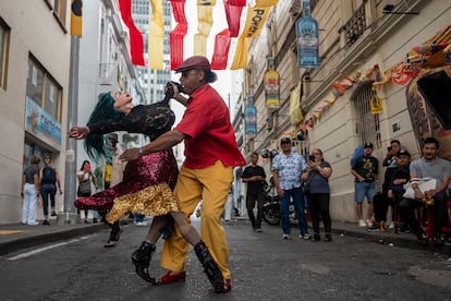 La Calle del Sabor en Cali es un hervidero de salsa brava. Más de ocho parlantes suenan al unísono en un tramo de solo 60 metros de largo por 10 de ancho cada viernes y sábado, sin falta. Son las 5.00 p.m., y aunque suena La última rumba, de Henry Fiol, es apenas el inicio de la infinita lista de canciones imperdibles que revolotean en las esquinas de la ciudad. De las botellas de cerveza caen gotas, como anticipando el caldero que será el asfalto en una hora o dos. Mientras la calle se llena de a pocos, Alexander Cortés (Cali, 55 años), conocido como El Canguro, castiga un cencerro. “Aquí nacimos pa’ la salsa, aquí morimos por ella”, sentencia con los ojos muy abiertos, como extasiado por el ruido.