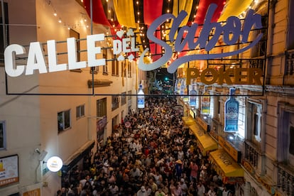 La Calle del Sabor cierra la calle décima, entre las carreras tercera y cuarta, a una cuadra del Bulevar del Río, en pleno centro de la ciudad. Es paralela a la calle novena o calle del pecado, una zona estigmatizada por su vida nocturna. “Esto era puro bar de mujeres, discotecas, ambiente pesado. La música lo transformó todo”, rememora El Canguro. “Todo estaba cerrado [por las restricciones sanitarias], pero la gente buscaba un lugar para encontrarse a bailar”, cuenta Brayan Medina (Armenia, 34 años), uno de los comerciantes que lidera la organización del espacio. “Éramos solo 10 personas escuchando música en la tienda de Arnover. Hoy llegan hasta 3.500 personas en una sola noche”, complementa.