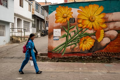 Seria y de sonrisa solo ocasional, a Ochoa se le ilumina la cara cuando cuenta la historia de su localidad y de su barrio, Mirador del Paraíso. Habla sin parpadear, con una determinación casi desafiante que parecería decir: “Este es mi barrio, atrévete a hablar mal de él”. En los ocho años de vida de la asociación, asegura haber paseado a más de 5.000 visitantes. Camina por la Calle de La Memoria, uno de los puntos de ese recorrido y donde, a través de murales, se cuentan historias locales. “Queremos contar nuestra propia historia y rescatar la memoria colectiva del sector con los cambios de los últimos 30 años”, asegura la lideresa.