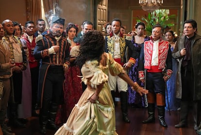Por un momento, el presidente Gustavo Petro ha cambiado la Casa de Nariño por un set de cine. Con casaca roja bordada, camisa blanca de cuello alto y fajín al estilo militar de inicios del siglo XIX, el mandatario aparece posando junto al actor de Hollywood Cuba Gooding Jr. en el rodaje de una película financiada por el propio Gobierno. Se trata de una biografía de José Prudencio Padilla, el almirante que comandó la flota independentista en la batalla del Lago de Maracaibo, considerada la victoria naval decisiva contra España, y un héroe de esa guerra a quien Petro reivindica con frecuencia. El rodaje, que se extendió por cinco meses y recorrió varios municipios de Boyacá, concluyó en febrero pasado.