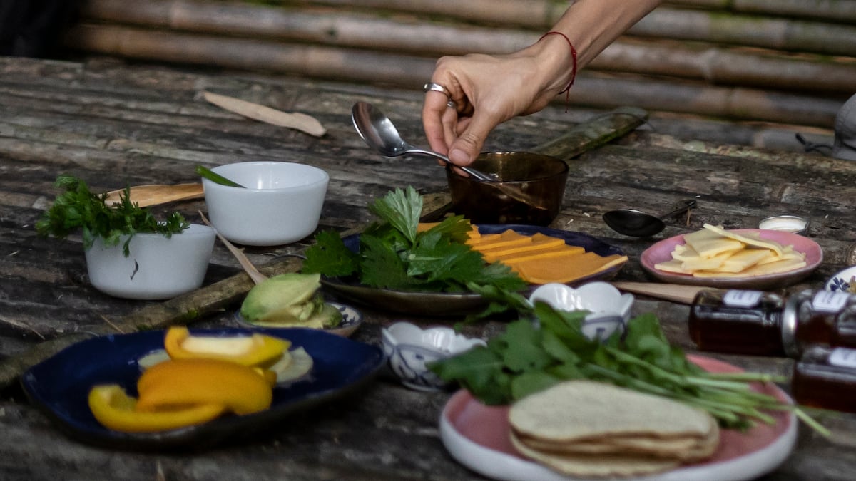 “Lo verdaderamente interesante es que don Clemente va a los tiempos del pescado y no al revés”, dice de cuclillas frente a un berro de agua que nace al borde del criadero. Un par de horas más tarde estará en una ración de balú con hogao; una legumbre nativa, también conocida como chachafruto, autóctona de la región de los Andes. En esta localidad, los hay por montones porque antiguamente se usaban para cercar fincas. Sin embargo, es un alimento que apenas se cocina. “Acá, como siempre en Colombia, toca rebuscarse”. En Mestizo, es uno de los platos que sorprende de inmediato. “Pero ¿esto se come?”, se preguntan los lugareños. Y termina convirtiéndose en uno de los favoritos del menú. Prácticamente todos los ingredientes que ofrecen, desde los tomates y la mantequilla del sofrito al queso curado o las legumbres, se producen a menos de 20 kilómetros y se sirven en el restaurante a unos 20.000 pesos colombianos (alrededor de 5 dólares). “Más de uno me ha dicho: ‘Anda, pues voy a probar a hacerlos yo, que tengo un árbol cerca. A ver cómo me quedan’”, cuenta.