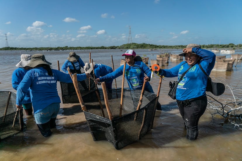 Así es como, desde hace 13 años y con mucha paciencia, este grupo de 18 mujeres de entre 27 y 84 años levanta una barrera de manglares en la costa norte yucateca que está ayudando a la recuperación de ecosistemas que se habían perdido por la degradación ambiental y el desarrollo urbanístico. Los bosques de mangle que ayudan a restaurar las chelemeras —como son conocidas estas mujeres de origen maya nacidas en Chelem, un pequeño pueblo de pescadores— tienen además la capacidad de frenar el aumento del nivel del mar, especialmente cuando golpean los huracanes, y capturar grandes cantidades de dióxido de carbono.