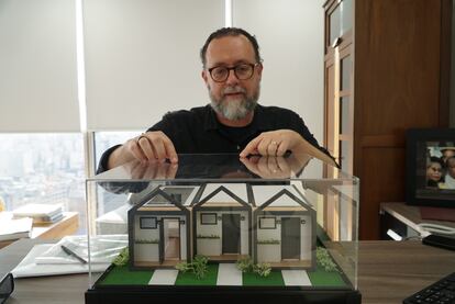 La solución que propone el Ayuntamiento, bajo el mandato actual de Ricardo Nunes (MDB), para atajar el grave aumento de las familias sin hogar en São Paulo es la creación de conjuntos de microapartamentos de 18 metros cuadrados para estancias temporales. Pueden acceder quienes vivan en la calle hace menos de dos años -tiempo en que las autoridades consideran que la situación aún no se ha hecho crónica- y pasarán un máximo de 24 meses, con posibilidad de alargar la estancia tras una evaluación del equipo técnico. “Nuestro objetivo es la autonomía, que en 18 meses esas personas consigan una vivienda definitiva”, explica el responsable del proyecto Reencontro, Carlos Bezerra Júnior (PSDB), secretario municipal de Asistencia y Desarrollo Social de São Paulo, además de médico y pastor evangélico. “Es un proyecto piloto, si funciona bien, lo ampliaremos. Utilizamos la estrategia conocida como housing first -vivienda primero-, para sacar a la persona de la calle de inmediato y que recupere la dignidad. Recibirá cursos de capacitación y un subsidio mensual. La prioridad son las familias con niños”, dice, entre las dos hileras de casetas prefabricadas de la Vila Reencontro Anhangabaú, en el centro de la ciudad. Es la segunda villa que construyen dentro del programa Reencontro que comanda. Fue inaugurada en febrero de este año y actualmente 38 de sus 40 viviendas están ocupadas por familias de hasta cuatro miembros, acogiendo a un total de 106 personas.