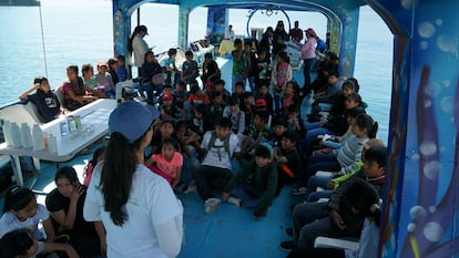 Después de batallar por más de una década con una variedad de estrategias para descontaminar el Lago de Atitlán, las autoridades optaron por apostarle a la educación ambiental de los más chicos. Para ello, se ingeniaron una escuela flotante, un barco de dos pisos en donde niños alrededor de los 10 años, por un día al mes, dejen las aulas de concreto para embarcarse en un aula lacustre. “Se trabaja con los niños para hacerles conciencia desde pequeños a través de prácticas e investigación. La idea de la escuela flotante es que ellos puedan multiplicar lo que vienen a aprender, con sus compañeros en la escuela y con sus familias”, apunta la bióloga Reyes.