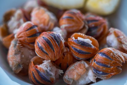 Durante la jornada, un comensal mayor queda impactado ante la oferta de colitas de langostino. Hacía décadas que no veía esos productos a la venta. Mariscos antes comunes en la costa chilena que hoy solo vivían en sus recuerdos. Él los imaginaba desaparecidos. Al encontrarlas ahí, exhibidas, dice: “Me emocioné”.