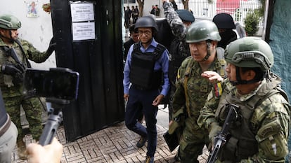 No es fácil decidir qué es normal y qué no, pero el Consejo Electoral de Ecuador definió este domingo como de “absoluta normalidad” el transcurso de las primeras horas de las elecciones presidenciales. En cierto modo, así fue. Todos los colegios electorales del país pudieron abrir sus puertas y los ciudadanos acudieron a las urnas sin mayores inconvenientes hasta su cierre a las cinco de la tarde. Hay imágenes, sin embargo, que cuestionan la normalidad de unas elecciones anticipadas marcadas por el asesinato de uno de los candidatos presidenciales hace 10 días. El sustituto de Fernando Villavicencio, Christian Zurita, llegó a la urna rodeado de militares y escudos como si alcanzara un frente de guerra, con casco y chaleco antibalas. Para los ecuatorianos, la normalidad hace tiempo que quedó atrás.