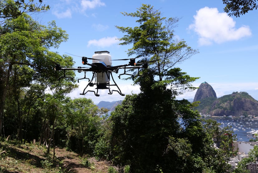 La ciudad costera brasileña de Río de Janeiro está utilizando drones para dispersar semillas lo cuales forman parte de una iniciativa del Ayuntamiento y de la empresa Morfo, quienes pretenden hacer uso de alta tecnología para acelerar los esfuerzos locales de reforestación y, de este modo, poder sembrar en zonas de difícil acceso que son más complicadas de alcanzar con métodos tradicionales.