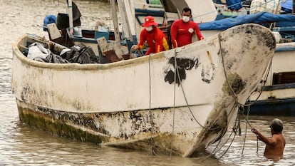 Los cadáveres descompuestos hallados en una patera a la deriva en la costa de Brasil son nueve y los indicios apuntan a que “las víctimas eran migrantes del continente africano, de la región de Mauritania y Malí”, según ha informado este martes la Policía Federal a través de un comunicado. La embarcación fue localizada el sábado por unos pescadores frente a la costa del Estado brasileño de Pará, en la otra orilla del Atlántico, a 4.200 kilómetros de la costa mauritana. Tras ser remolcada a tierra, al municipio de Bragança, agentes de la policía brasileña la inspeccionaron este lunes y, gracias a la documentación y pertenencias encontradas junto a los cuerpos, han podido apuntar su origen. Eso significa que probablemente se trataba de una de tantas pateras que pretenden llegar a Europa.