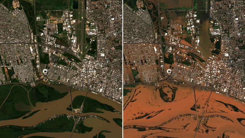 Imágenes desde el satélite Copernicus Sentinel-2 de la Unión Europea captaron el antes y después de las ciudades afectadas por las inundaciones recientes en Brasil. Las fotografías muestran la devastación que sufrieron las ciudades de Porto Alegre y São Leopoldo.